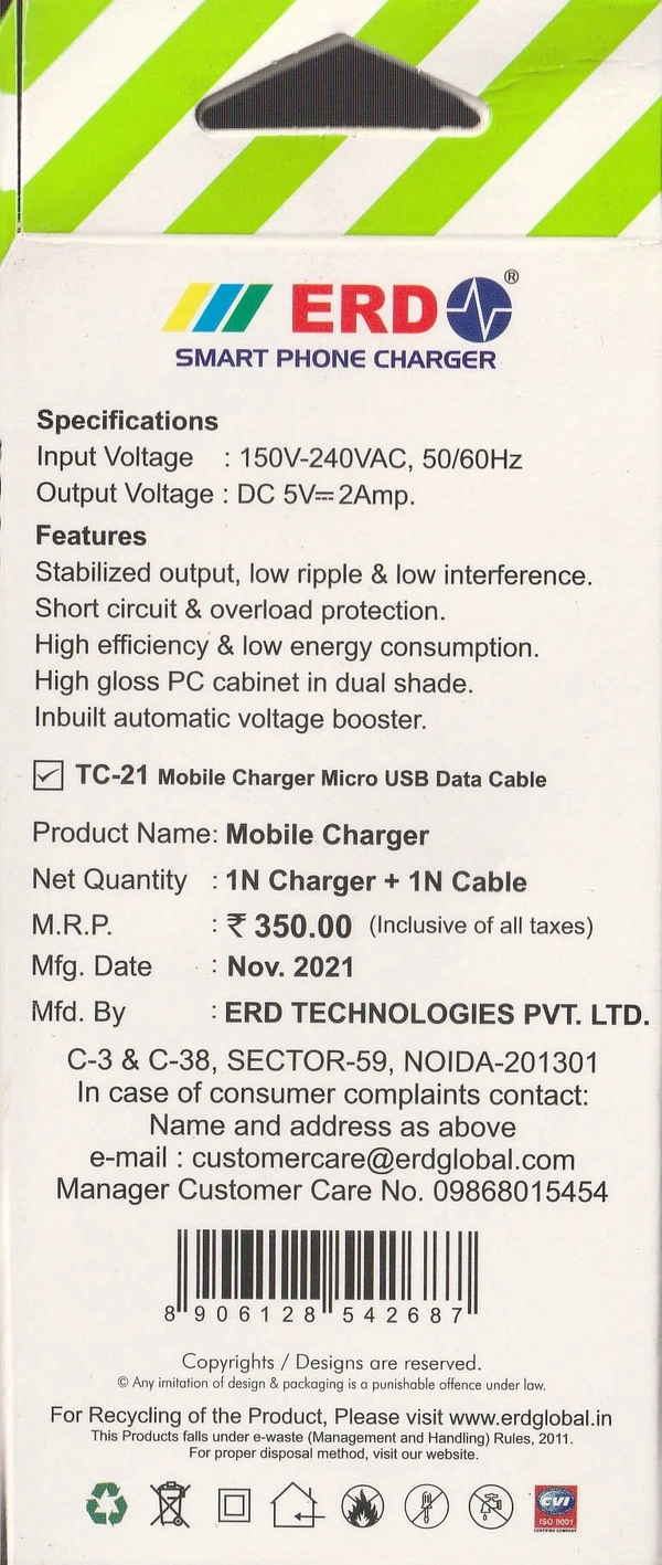 ERD Mobile Charger With Micro USB Cable